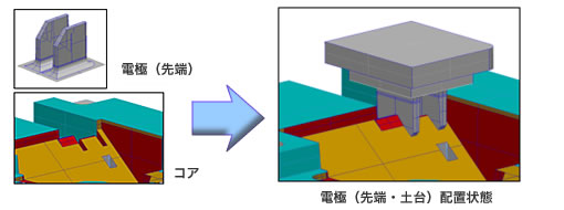 3次元設計の実現のため、CADmeisterのカスタマイズ機能を利用して電極コマンドを内製しています。