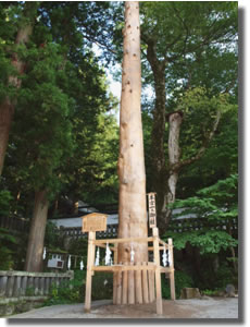 長さ約17m、直径1m余り、重さ10トンを超える巨木を山から切り出し、人力のみで各神社までの道中を曳いて、最後に社殿を囲むように四隅に建てます。