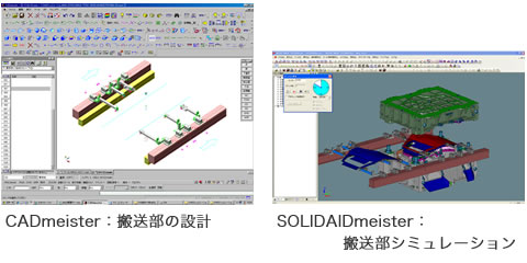 設計した金型の3Dデータをそのまま搬送部の設計・シミュレーションに持っていくことで3Dの利点を出しました。