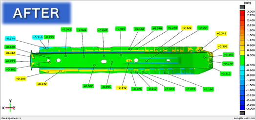 CADmeister導入後、力学的ねじれ見込変形機能を使用してトライプレスしたパネルの測定結果です。