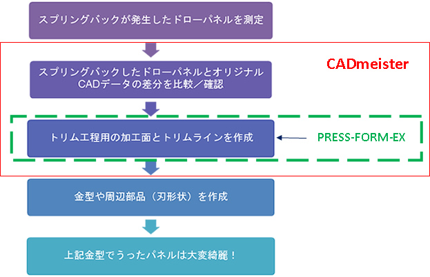 「CADmeisterのFORM-EXは主にスプリングバック対策の見込みモデリングに関する課題を解決することに有効です。