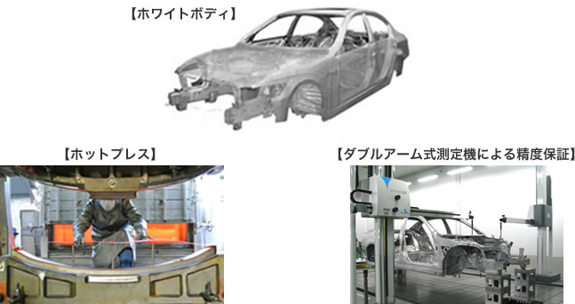 試作事業では、車体軽量化のために適用が拡大しているホットプレスに対応。試作メーカーでは他に例をみない鋳鉄製造の内製化、寸法精度見込み技術の強みを活かし、高品質・短納期を実現している。