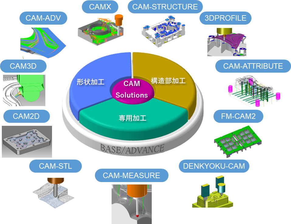 CAM-ADVはCADmeister/CAMアドオンすることで機能拡張を行い無駄や手戻りがない作業フローを実現します。