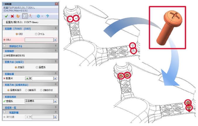 指示部品の一括配置