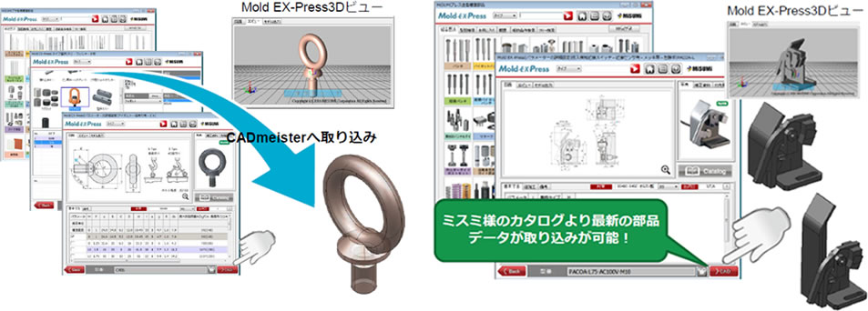 Mold EX-Press部品を登録することで、標準部品を同じ操作で利用可能です。