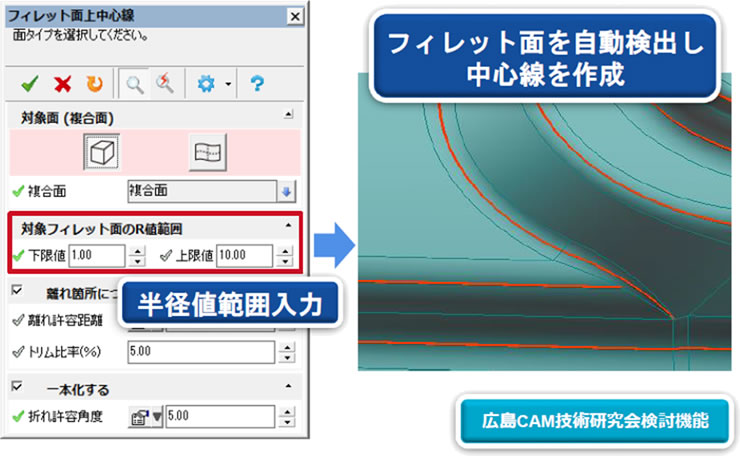 フィレット面を自動検出し、中心線を作成するコマンドをリリースしました。