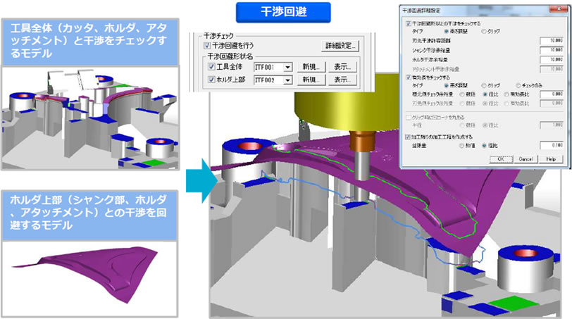 工具干渉回避機能で、「工具全体(従来)」に加え「ホルダ上部」の指示が可能になります。