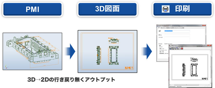 PMI(Product and manufacturing information)の作成と、PMI を活用した3DAモデル(3D単独図)を実現します。