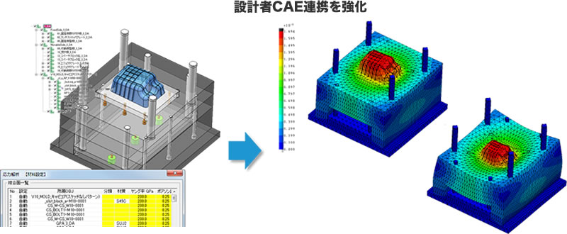 ASSY状態(複数立体のまま)で解析を実行できる機能を強化。各立体の接触箇所や材料情報は設計データから自動設定されます。