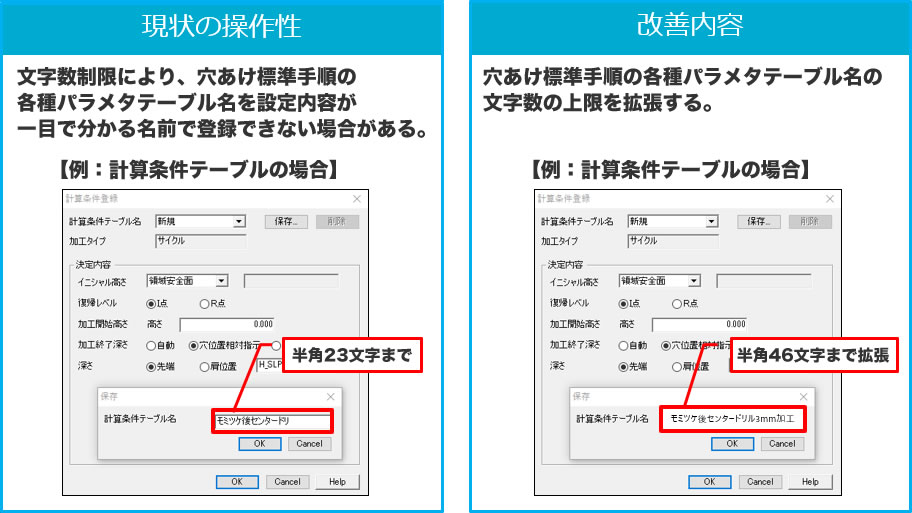 つきましては、下記の「CAD系改善項目候補」ならびに「CAM系改善項目候補」をご確認頂き、お客様がご要望される