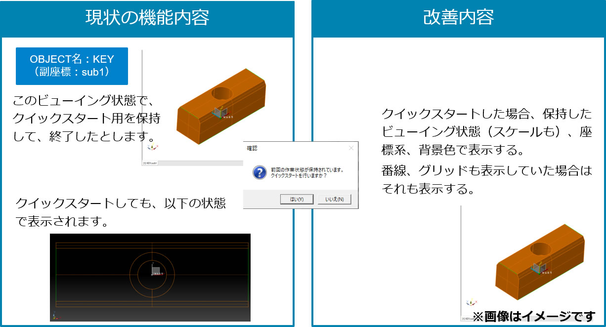 1.クイックスタート時、最後に作業していたときのビューイングの再現