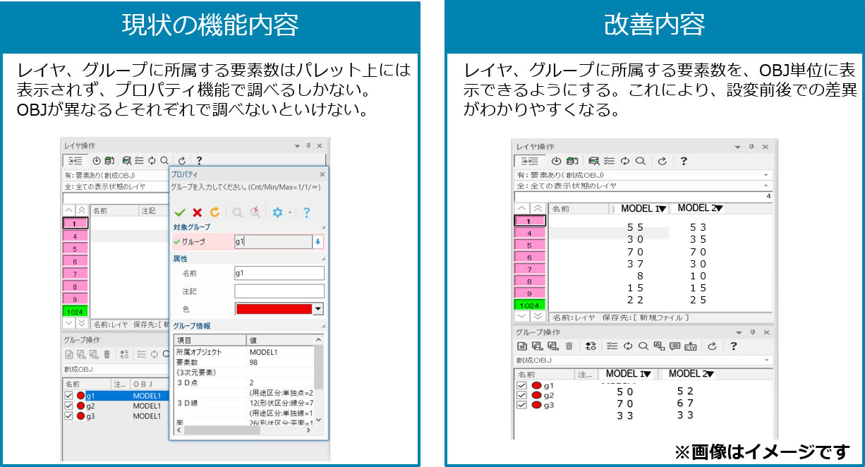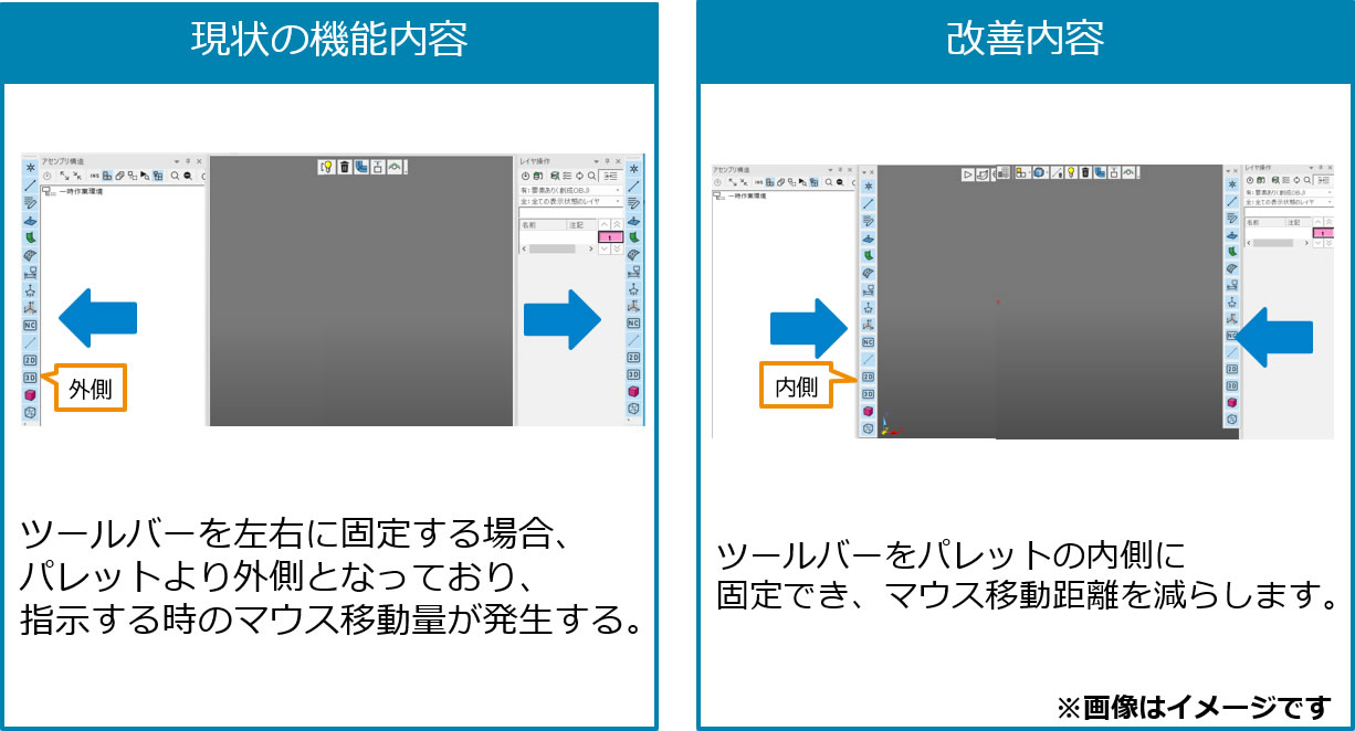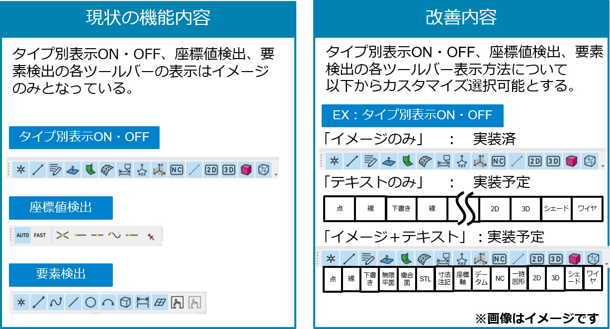 2.タイプ別表示ON・OFF、座標値検出、要素検出の各ツールバー表示方法のカスタマイズ対応