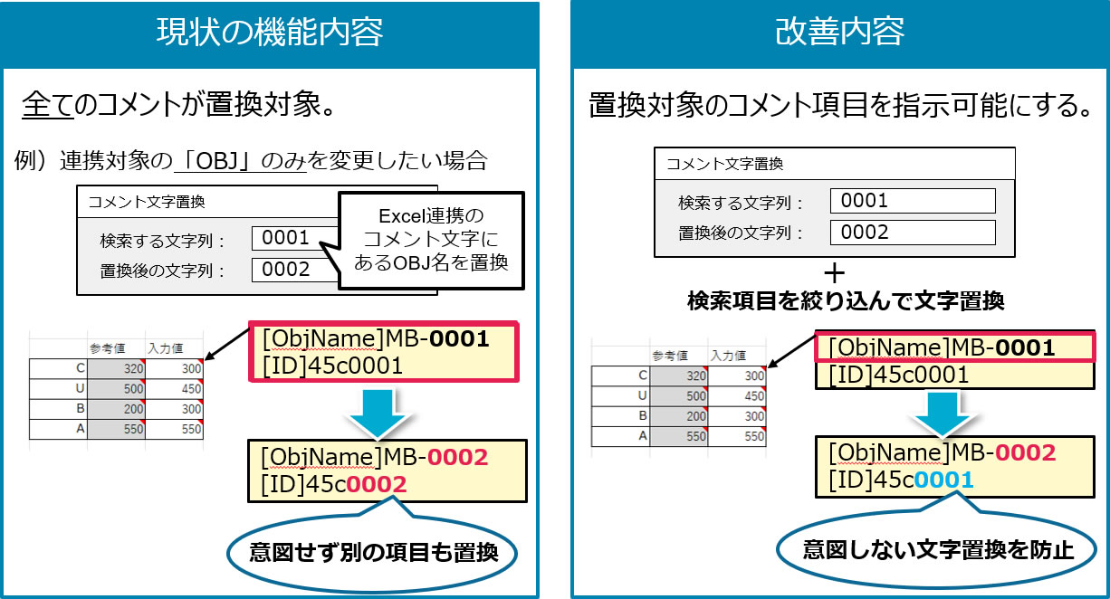 18.EXCEL連携 データの更新/コメント文字置換の改善