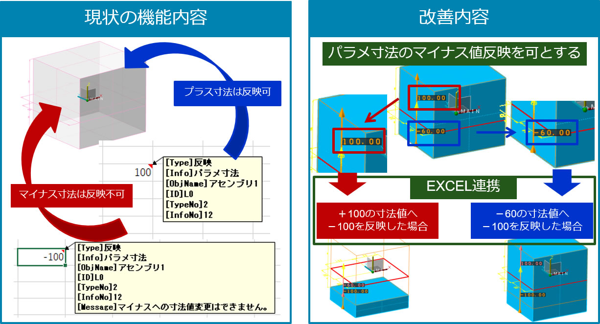 20.EXCEL連携 パラメ寸法のマイナス値対応