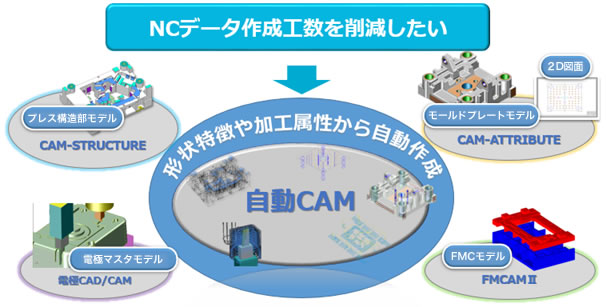 ![]() ![]() @ ![]() CADmeister‚Å‚ÍACAD/CAMˆê‘ÌŒ^ƒVƒXƒeƒ€‚Ì“Á’¥‚ðÅ‘åŒÀ‚ÉŠˆ‚©‚µAÝŒvŽÒ‚ª•t—^‚µ‚½‰ÁH‘®«‚âŒ`ó“Á’¥‚ð—˜—p‚µ‚½uŽ©“®CAMv¤•i‚ðŽæ‚è‘µ‚¦‚Ä‚¢‚Ü‚·B ƒvƒŒƒXŒ^\‘¢•”‰ÁH—puCAM-STRUCTUREv@PRESS‰ÁH‘®«‚©‚çÀ–Ê‚âƒ|ƒPƒbƒgAŒŠ‚ ‚¯‰ÁHƒf[ƒ^‚ðŽ©“®ì¬‚µ‚Ü‚·B ƒvƒŒ[ƒg‰ÁH—puCAM-ATTRIBUTEv@ƒ\ƒŠƒbƒhƒf[ƒ^‚â2ŽŸŒ³}–Ê‚©‚猊‰ÁHƒf[ƒ^‚ÌŽ©“®ì¬‚ª‰Â”\‚Å‚·B @“d‹Éƒ}ƒXƒ^‰ÁH—p‚Ì“d‹ÉCAM‚ł͕¡”‚̃}ƒXƒ^ƒ‚ƒfƒ‹‚ð•W€‰ÁHŽè‡‚Ƀhƒ‰ƒbƒN•ƒhƒƒbƒv @‚·‚邾‚¯‚ÅNCƒf[ƒ^‚ð쬂ł«‚Ü‚·B ƒtƒ‹ƒ‚[ƒ‹ƒh‰ÁH—puFMCAM2v@Œ`ó“Á’¥‚ɉž‚¶‚½Å“K‚ȉÁHƒpƒX‚ðA•\‰ÁH‚Æ— ‰ÁH‚̃f[ƒ^‚ðˆêЇ‚Å쬂µ‚Ü‚·B CADmeister‚ł̓f[ƒ^쬂̕W€‰»EŽ©“®‰»‚É‚æ‚èAƒf[ƒ^ì¬H”‚Ì팸‚ÉvŒ£‚µ‚Ü‚·B |