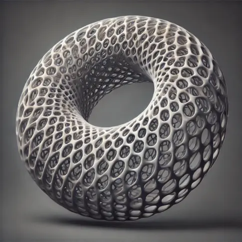 「枝状に分岐した格子を周期的に並べた構造」で、3Dプリントする場合においては、造形物の中身が詰まった状態ではなく、空洞にできるため、外形の形状を維持し、強度も保ちつつ軽量化を図れるメリットがあります。