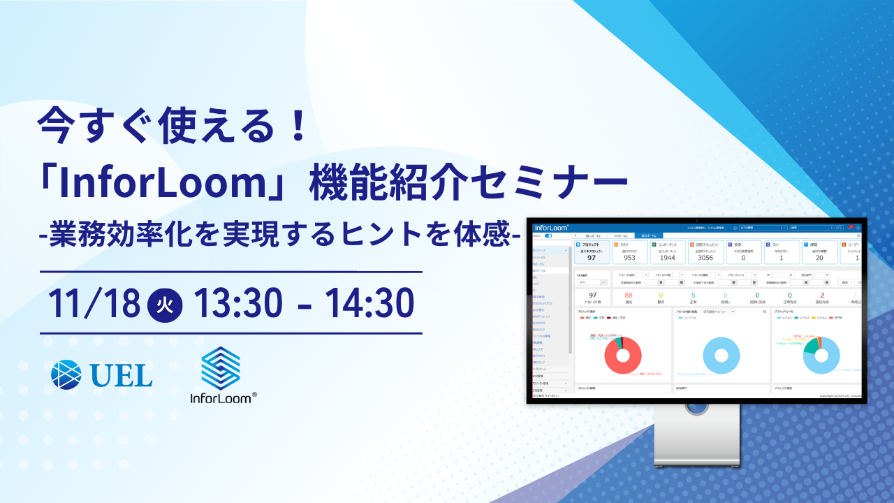 本セミナーでは、その課題解決のヒントとなる「InforLoom」の主要機能を、実際のデモを交えてわかりやすくご紹介します。
